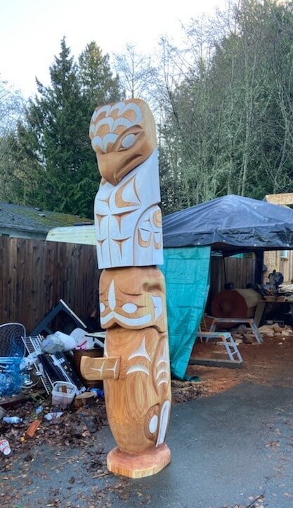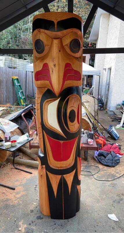 Bear, a very talented artist, has many years of experience as Totem Pole carver. He grew up watching and learning the trade from his Dad, Doug LaFortune, his uncles Francis Horne, Tom LaFortune, Bear is working in his studio on Vancouver Island and will be helping you with design options and ideas and give you time frames etc.