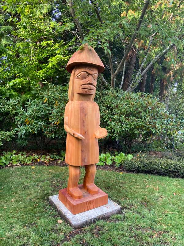 Red Cedar Totem Pole, Indoor or Outdoor, hand carved and designed by Tsawout First Nation artist Bear (Doug) Horne from Vancouver Island - son of Doug LaFortune, member of a large and very well known family of master carvers.
