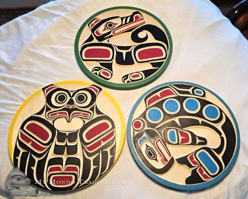 Lot of 3 (!!!) 15 1/2" wall art carvings by Hereditary Chief Peter W. Smith