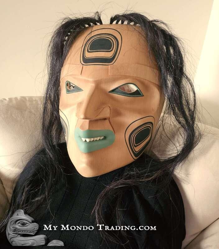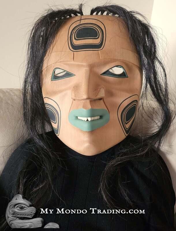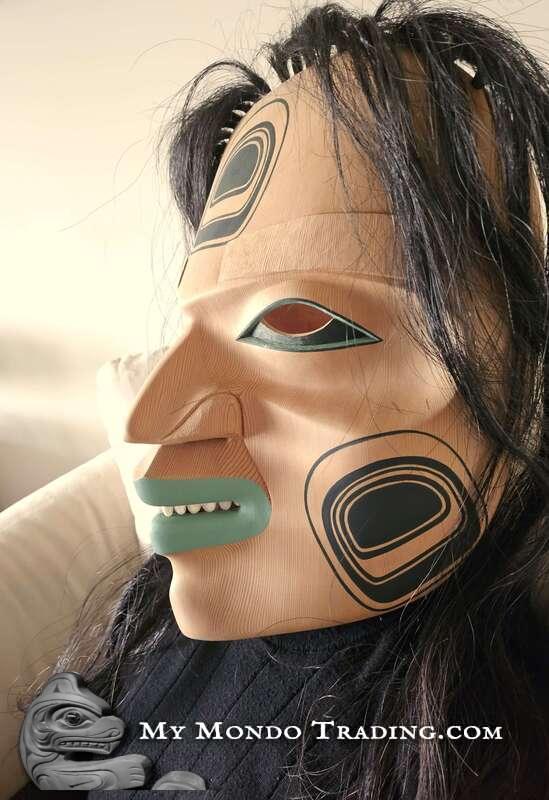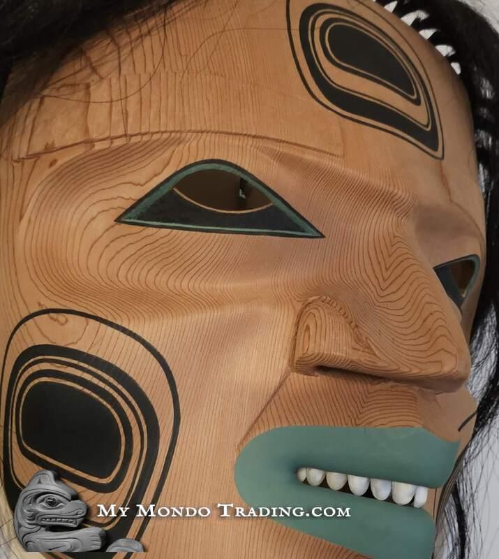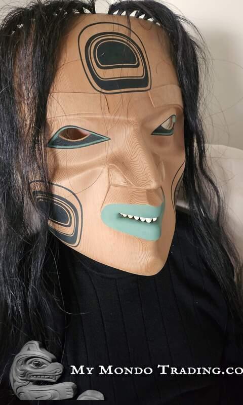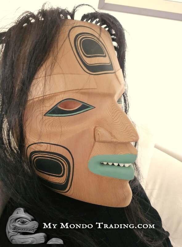 Messenger of the Kumugwe - large cedar mask by Kolten Khasalus Grant from the house of Lilawagila from Kingcome Inlet, British Columbia's Pacific Northwest coast.