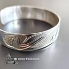 1/2" Silver cuff bracelet, Orca Killer Whale design, by Paddy Seaweed, Kwakiutl Jewelry art
